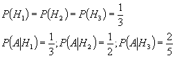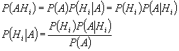 Теорема гипотез (формула Байеса). Пусть вероятность полной группы не совместных гипотез H 1 , H 2 , …, H n известны и равны P(H 1 ), P(H 2 ), …, P(H n ). Событие А может появиться совместно с условной вероятностью P(A|H i ) (i=1,2,…,n). Спрашивается, как следует изменить вероятности гипотез после проведения опытов в связи с появлением этого события. Иными словами, требуется найти условную вероятность P(H i ,A).