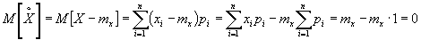Центрированной случайной величиной соответственной случайной величины Х называют отклонение случайной величины Х от ее математического ожидания: