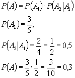 Задача на умножение вероятностей. В урне находится 3 белых и 2 черных шара. Вынимается по 2 шара. Найти вероятность того, что оба шара белые? А 1 - первый шар белый. А 2 - второй шар белый. А=А 1 А 2