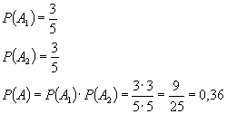 А=А 1 +А 2 ; P(A)=P(A 1 )+P(A 2 )-P(A 1 A 2 ); P(A 1 A 2 )=0