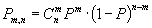 Рассмотрим серию из n однородных, не зависимых опытов, проводимых в одинаковых условиях, в каждом из которых может появиться или не появиться событие А . Вероятность появления F=P, не появления q=1-P. Предполагается, что вероятность р остается одной и той же в каждом опыте. Требуется найти вероятность Р m,n того, что А в этих n опытах появится ровно m раз (0<=m<=n).