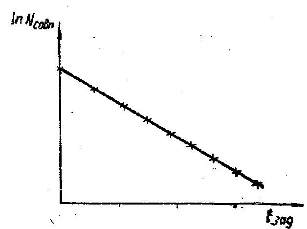 Рис.9. Зависимость числа совпадений от величины задержки. Экспериментальное обнаружение нейтрино. Практически все свойства нейтрино - самая загадочная из элементарных частиц -получены из косвенных данных. Нейтрино может преодолевать огромные толщи вещества, не взаимодействуя с ним. При радиоактивном распаде ядер испускаются два сорта нейтрино. Так, при позитронном распаде ядро испускает позитрон (античастица) и нейтрино ( n -частица). При электронном распаде испускается электрон (частица) и антинейтрино ( ` n -античастйца).