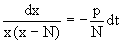 Исследование поведения различных систем (технические, экономические, экологические и др.) часто приводит к анализу и решению уравнений, включающих как параметры системы, так и скорости их изменения, аналитическим выражением которых являются производные. Такие уравнения, содержащие производные, называются дифференциальными. Рассмотрим следующий пример из области рекламного дела. При организации продажи нового товара торговым предприятиям зачастую приходится прибегать к услугам рекламы. Для того, чтобы последняя была успешной и современной, необходимо знать закон распространения информации о новом товаре среди ее потенциальных покупателей. Найдем вид указанной закономерности при следующих предположениях относительно рассматриваемого процесса. Пусть N – общее число потенциальных покупателей нового товара, x(t) – число покупателей, знающих к моменту времени t о поступлении в продажу нового товара, [N-x(t)] – число покупателей еще не имеющих информации о товаре. Предположим, что информация о товаре распространяется среди покупателей посредством их общения между собой. Будем считать, что в течение достаточно малого промежутка времени возможна встреча лишь двух покупателей, и вероятность этой встречи считаем равной P. Вероятность того, что при встрече покупатель, знающий о товаре, встретиться с покупателем, еще не имеющем информации о товаре, равна (N-x)/N. Тогда скорость изменения величины x(t) в момент t равняется px(N-x)/N систематическому ожиданию числа покупателей впервые узнавших о товаре. Таким образом, получаем уравнение