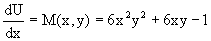 в котором переменная y считается закрепленной. Интегрируя это уравнение, получаем U(x,y)=2x 3 y 2 +3x 2 y-x+h(y). На втором этапе определяем вид функции h(y), используя для этого соотношение