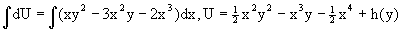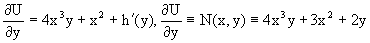 затем из U / y =x 2 y-x 3 +h / (x) и U / y =N(x,y)=x 2 y-x 3