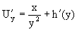 в котором уже закрепляется как бы значение переменной x. Используя данное соотношение и вид функции U(x,y), получаем дифференциальное уравнение, связывающее переменные h и y: