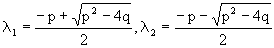 Случай 1. Дискриминант характеристического уравнения положителен, т.е. p