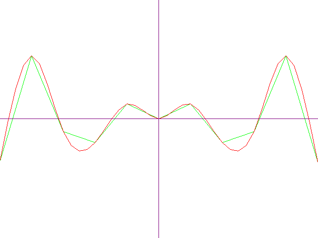 Красным цветом – график сплайна, полученный при интерполировании исходного графика, причём дополнительно построено всего 3 точки на каждом интервале. Поделитесь этой записью или добавьте в закладки |