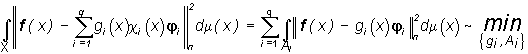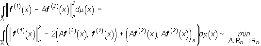 3). Задачи совмещения изображений и поиска фрагмента. Пусть f ( × ) - заданное изображение, A Ì X - подмножество поля зрения, c A ( × ) - его индикатор, c A ( × ) f ( × ) -назовем фрагментом изображения f ( × ) на подмножестве A, представляющем выделенный фрагмент сцены, изображенной на f ( × ). Пусть g ( × ) - изображение той же сцены, полученное при других условиях, в частности, например, сдвинутое, повернутое, т.е. геометрически искаженное по сравнению с f ( × ). Задача состоит в том, чтобы указать на g ( × ) фрагмент изображения, представляющий на f ( × ) фрагмент сцены и совместить его с c A ( × ) f ( × ).