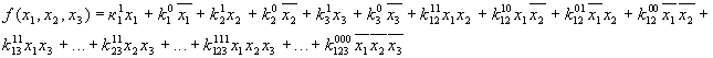 Метод неопределенных коэффициентов. (1.2) Суть метода состоит в преобразовании ДСНФ в МДНФ. На основании теоремы Жигалкина любую ФАЛ можно представить в виде (рассмотрим на примере трех переменных):