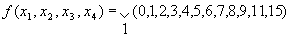 Запишем n-группы: 0-Группа: 0000 1-Группа: 0001, 0010, 0100, 1000 2-Группа: 0011, 0101, 0110, 1001 3-Группа: 0111,1011 4-Группа: 1111 Теперь сравним группы с номерами n и n+1: 0-Группа: 000-, 00-0, 0-00, -000 1-Группа: 00-1, 0-01, -001, 001-, 0-10, 010-,01-0, 100- 2-Группа: 0-11, -011, 01-1, 011-, 10-1 3-Группа: -111, 1-11 Еще раз сравним (при этом прочерки должны быть на одинаковых позициях): 0-Группа: 00--, 0-0-, -00- 1-Группа: 0--1, -0-1, 0-1-, 01— 2-Группа: --11 И еще раз сравним: 0-Группа: 0--- Запишем таблицу исходных min-термов, где функция равна 1: