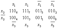 Метод минимизирующих карт (для ДСНФ и КСНФ). (1.5) Одним из способов графического представления булевых функций от небольшого числа переменных являются карты Карно. Их разновидность – карты Вейча, которые строятся как развертки кубов на плоскости, при этом вершины куба представляются клетками карты, координаты которых совпадают с координатами соответствующих вершин куба. Для ДСНФ единицы ставятся в клетке, соответствующей номеру набора, на котором значение функции равно единице, а ноль не ставится, а для КСНФ – наоборот.