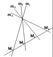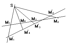 Аналогичное утверждение можно сформулировать для плоского пучка из четырех лучей m 1 m 2 m 3 m 4 Любая прямая, пересекающая эти четыре луча в четырех точках, имеет для этих четырех точек одно и тоже сложное отношение.