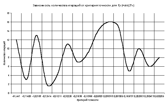 Таблица и график зависимости количества итераций от различных значений критерия точности