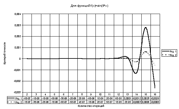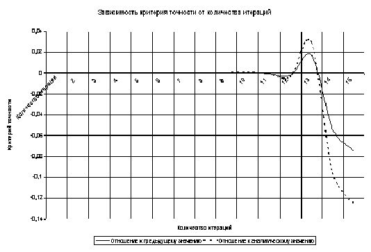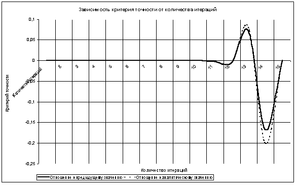 Таблица и график зависимости значений критерия точности от количества итераций