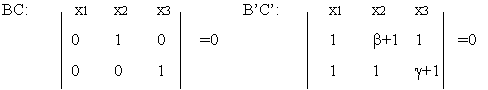 А(1,0,0), В(0,1,0), С(0,0,1), О(1,1,1) Координаты ()А'- есть линейная комбинация координат ()А и ()О, так как А ¹ А', то а'= a А + d q