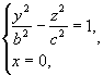 Уравнение (5) называется каноническим уравнением двуполостного гиперболоида. Установим геометрический вид поверхности (5). Для этого рассмотрим его сечения координатными плоскостями Oxy и Oyz. Получаем соответственно уравнения