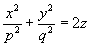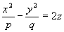 точка (0;0;0) называется вершиной параболоида; числа p и q – его параметрами.