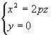 где p>0, q>0. Уравнение (9) называется каноническим уравнением гиперболического параболоида. Рассмотрим сечение параболоида плоскостью Oxz (y=0). Получаем уравнение