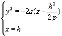 из которых следует, что при любом h в сечении получается парабола, направленная вниз, а вершина её лежит на параболе, определённой уравнениями (10). Рассмотрим сечения параболоида плоскостями z=h, параллельными плоскости Oxy . получим уравнения