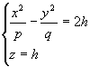 из которых следует, что в сечениях получаются гиперболы. Теперь рассмотрим сечения данного гиперболоида плоскостями z=h, параллельными координатной плоскости Oxy. Линия, получающаяся в сечении, определяется уравнениями