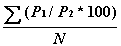 Метод невзвешенных относительных средних. В качестве альтернативы рассмотренным методам построения индексов, мы можем использовать метод невзвешенных относительных средних. При подсчете простого индекса (табл. 1.1 ) уже была использована разновидность метода относительных средних. В том примере с одной измеряемой величиной мы подсчитали относительный процент путем деления количества корпораций в текущем году P 1 на их количество в базовом году P 2 затем умножили результат на 100 . Подсчет невзвешенного индекса относительных средних: В случае более чем одного наименования продукта или рода деятельности, сначала находится отношение текущей цены к базовой (для каждого продукта) и каждое отношение умножают на 100 . Затем полученные значения складываются и результат делится на количество товаров.
