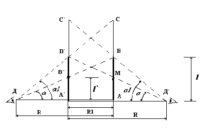 стержень A`B ` назовем системой отсчета K ` . В каждой из указанных систем отсчета наблюдатели могут производить отсчет угловых размеров стержней по отношению друг к другу. Для наблюдателя в Д система отсчета К (стержень АВ ) является собственной системой отсчета. Соответственно, для наблюдатенля в Д ` собственной системой отсчета будет система К ` (стержень A`B ` ). Однако, если наблюдатели не могут покинуть точки Д и Д ` (например, если R - большая величина), то априори они не смогут установить соотношения (4) и (5). Но пусть в точках A, B, A`, B` имеются зеркала. Тогда с помощью световых сигналов каждый из наблюдателей обнаружит, что выполняется следующее соотношение