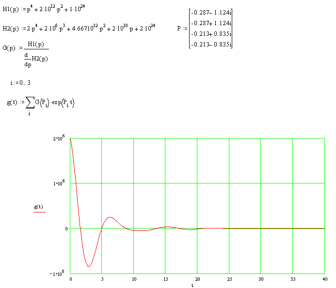 p к – полюса, которые были найдены ранее в главе 2. Расчет и построение графика импульсной характеристики приведены в Приложении 2.