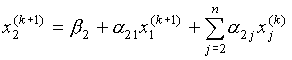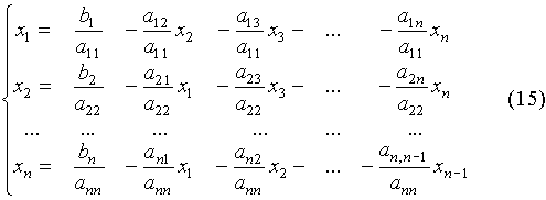 Выбираем произвольно начальные приближения неизвестных и подставляем в первое уравнение системы (17). Полученное первое приближение подставляем во второе уравнение системы и так далее до последнего уравнения. Аналогично строим вторые, третьи и т.д. итерации.
