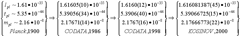 Таким образом, за столетний период своего существования, константы l pl , t pl , m pl прошли несколько этапов, на которых их значения считались то более точными, то менее точными: