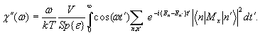 Легко видеть, что второй член в (29) равен нулю, так как поворот спинов на 180°, например вокруг оси ох, не изменяет Hў 1 и M x но преобразует M у в – M y . Заменяя в (27) G (t) на G 1 (t) cosw 0 t , где G 1 (t)=Sp{ еxp(iH‘ 1 t)M x е(–iH‘ 1 t)M x } называется сокращенной функцией автокорреляции, и вводя обозначение h (u) = f( w 0 + u), получаем