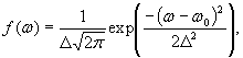 для которой легко найти М 2 = D 2 , M 4 =3D 4 , М 2n = 1, 3, 5, ..., (2n – 1) D 2n , причем нечетные моменты равны нулю. Полуширина на половине высоты d определяемая соотношением f( w 0 + d ) = f( w 0) /2, или ехр( – d 2 /2D 2 ) = 1/2 оказывается равной
