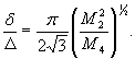 Ширина на половине высоты значительно меньше, чем среднеквадратичная ширина. С другой стороны, предположение о гауссовой форме линии может быть разумным всякий раз, когда отношение M 4 /( M 2 ) 2 порядка 3.