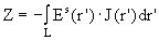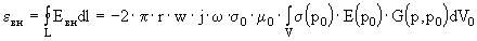где интеграл берется по измерительной катушке, J(r) - плотность тока в возбуждающей катушке. Применяя теорему взаимности импеданс можно представить через возбуждающее поле: