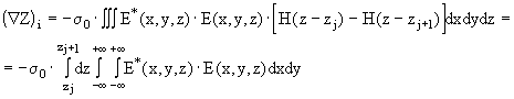 В случае проводящего ОК, состоящего из N параллельных слоев с проводимостью s j распределение электропроводности по глубине можно представить с помощью функций Хевисайда H(z) как s (z)= S s j Ч [ H( z-z j ) - H( z-z j+1 ) ] . Подставляя в (2.4.12) базовые функции вида f i (z)=[H( z-z j )-H( z-z j+1 )] , получим окончательное выражение: