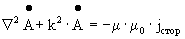Поскольку векторный потенциал магнитного поля задан с точностью до градиента некоторого скаляра, а потенциал y с точностью до постоянной величины, имеется возможность положить значение величины в квадратных скобках выражения (3.7) равное нулю (так называемая калибровка Лоренца). В результате получаем уравнение Гельмгольца для векторного потенциала магнитного поля :