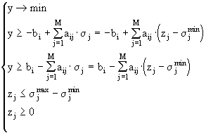Пусть y = maxФ i ’ = Ф p ’ і 0. В этом случае мы можем свести задачу (4.4) к эквивалентной задаче линейного программирования, состоящей в условной минимизации функции y . Рассмотрим процесс приведения задачи линейного программирования к каноническому виду. Раскрывая модуль в (4.5) получаем систему уравнений
