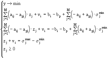 Приведем систему неравенств (4.12) к каноническому виду (6.1). Для этого, в соответствии со стандартным подходом, запишем все неравенства в виде равенств, добавляя в левые части неравенств неотрицательные переменные v .