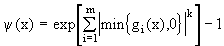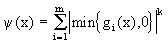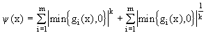 Непрерывную функцию y (х) называют штрафом, если y (х)=0 для х О Х и y (х)>0 в противном случае. Функция y (х) должна быть выбрана таким образом, чтобы решение задачи (6.2) сходилось при b ® 0 к решению исходной задачи (6.1) или, по крайней мере, стремилось к нему. Приведем часто используемые выражения для штрафа :