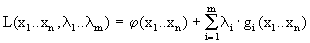 Таким образом итерация метода имеет вид: x k+1 =P X [ x k - a k Ч С f( x k ) ], где Р X (у) - ортогональная проекция точки у на множество Х . Для отыскания направления спуска s k необходимо решить задачу минимизации квадратичной функции || r k - х || 2 на множестве Х . В общем случае эта задача того же порядка сложности, что и исходная, однако для задач, допустимое множество которых имеет простую геометрическую структуру, отыскание проекции значительно упрщается. Например, для многомерного параллелепипида Q N ={x О R N : a Ј x Ј b }, отыскание проекции осуществляется путем сравнения n чисел и имеет вид P(x)={ a i , x i < a i ; x i , x i О [ a i ,b i ] ; b i , x i > b i }. 6.2.3 Метод случайного спуска Метод характеризуется тем, что в качестве направления спуска s K выбирается некоторая реализация n -мерной случайной величины S с известным законом распределения. Об эффективности этого метода судить трудно, однако благодаря использованию быстродействующих ЭВМ он оказывается практически полезным. 6.3 Метод множителей Лагранжа Идея метода состоит в отыскании седловой точки функции Лагранжа задачи (6.1). Для нахождения решения вводится набор переменных l i , называемых множители Лагранжа, и составляется функция Лагранжа, имеющая вид: