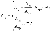4. Составление нового базиса 4.1 Выбор элемента для введения в базис. В базис вводится любой столбец, для которого D k < 0 , обозначим его D p 4.2 Выбор элемента исключаемого из базиса Из текущего базиса исключается столбец, для которого минимально отношение b i /A ip , i=1,M обозначим его b r /A rp