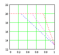 Для иллюстрации наших рассуждений приведем пример применения приведенных выше аппроксимаций к случаю восстановления кусочно-линейной функции. По оси абсцисс отложена относительная глубина, по оси ординат электропроводность (МСм/м).