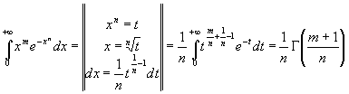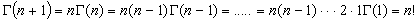 то есть при целых значениях аргумента гамма-функция превращается в факториал.Порядок которого на единицу меньше взятого значения аргумента.При n=1 в (2.4) имеем