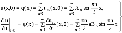 также удовлетворяет этому уравнению и граничным условиям (9). Начальные условия позволяют определить A n и B n . Потребуем, чтобы функция (24) удовлетворяла условиям (10)