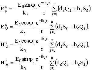 Согласно этим формулам, дифрагированное поле представляется в виде сумм отдельных парциальных волн. Интенсивность возбуждения