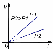 давлениям соответствует разные изобары. С ростом давления объем газа при постоянной температуре согласно закону Бойля-Мариотта уменьшается. В области низких температур все изобары идеального газа сходятся в точке Т=0. Но это не означает, что объем реального газа действительно обращается в нуль. Все газы при сильном охлаждении превращаются в жидкости, а к жидкостям уравнение состояния идеального газа неприменимо. Изобарным можно считать расширение газа при нагревании его в цилиндре с подвижным поршнем. Постоянство давления в цилиндре обеспечивается атмосферным давлением на внешнюю поверхность поршня.