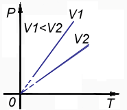 В соответствии с уравнением p=const·T все изохоры начинаются в точке Т=0. Значит, давление идеального газа при абсолютном нуле равно нулю. Увеличение давления газа в любой емкости или в электрической лампочке при нагревании является изохорным процессом. Изохорный процесс используется в газовых термометрах постоянного объема. Изображается на графике прямой (