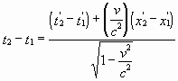 Эта формула означает, что промежуток времени, отмеченный неподвижными часами, оказывается большим, чем промежуток времени, отмеренный движущимися часами. Но это означает, что движущиеся часы отстают от неподвижных, т.е. их ход замедляется. Эта формула также обратима, как и соответствующая формула для масштабов. Однако написав обратную формулу в виде