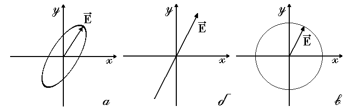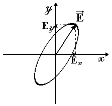 Как известно (из курса механики), два взаимно перпендикулярных гармонических колебания одинаковой частоты при сложении дают в общем случае движение по эллипсу. Аналогично, точка с координатами (2) движется по эллипсу. Следовательно, две когерентные плоско поляризованные волны, плоскости колебаний которых взаимно перпендикулярны, при наложении друг на друга дают волну, в которой вектор