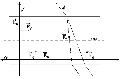 На рис. 8 показано распространение обыкновенного и необыкновенного лучей в кристалле (главная плоскость совпадает с плоскостью чертежа,